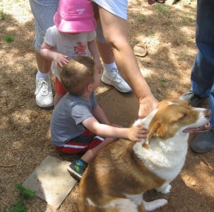 July 4, 2016July 4, 2016Nancy Grace petting Nick petting Snickers! Snickers, being petted by Nick, being petted by Grace … who remained unsure of us dogs, but knows she can count on her brother!