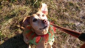 Not so long story, made even shorter — I run into a guy at the recycling bins every once in a while and we chat. I ran into him again while we were picking up bird seed at the local “feed and seed” where I buy 50 pounds of dog food every week. It being the holiday season and all, we debated the merit of several seeds, and then somehow we got onto dogs and I strongly pushed him to foster/adopt for the holidays. Well, being an advocate of “practice what you preach,” and seeing a request on Facebook for Christmas fosters, I offered, and here is Lettie.